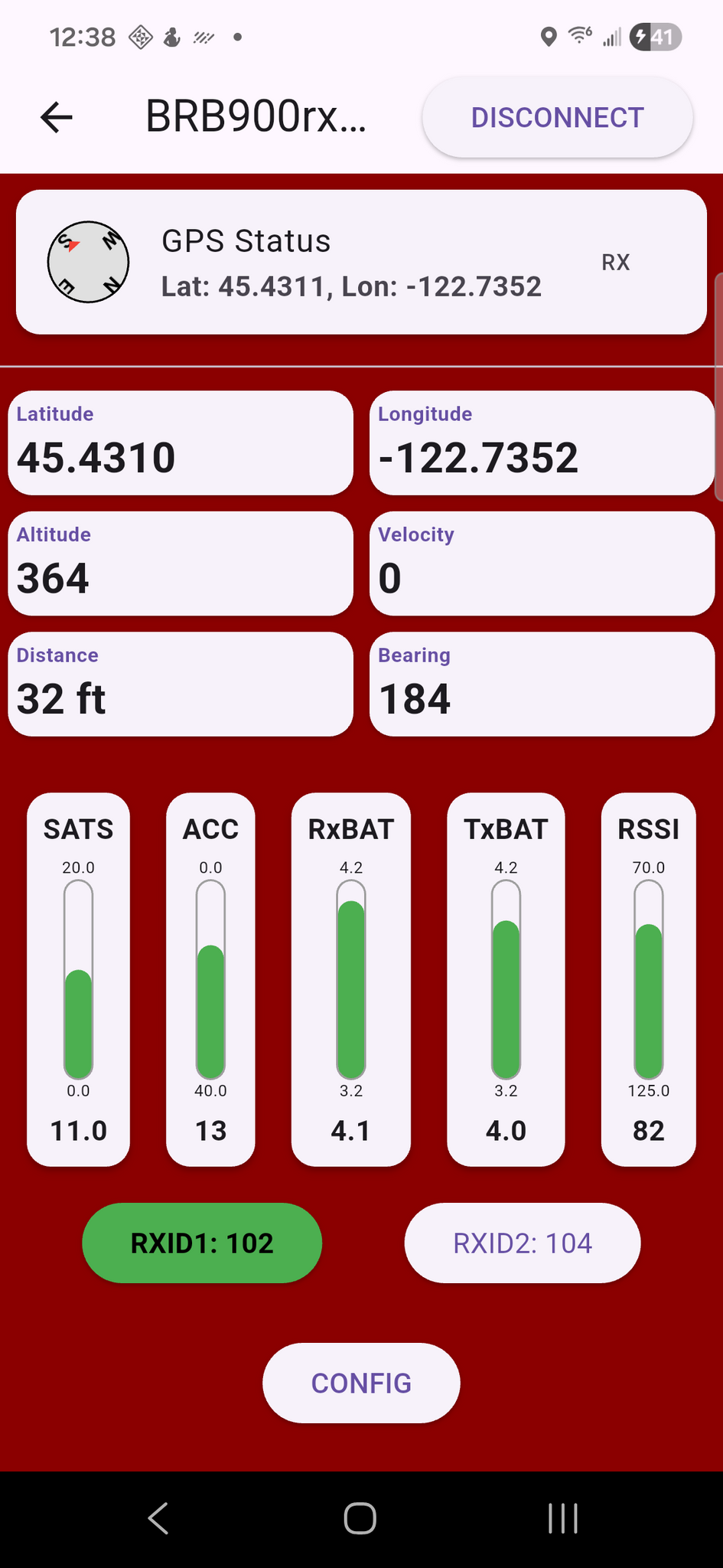 Receiver: Same form factor as current BRB900. 16 column x 3 row sunlight readable LCD displays latitude, longitude, altitude, max altitude and distance / bearing to pad. No bluetooth, no phone, no PC or expensive APRS receiver required to display critical flight information. Two transmitters can be monitored at once for staged flights.